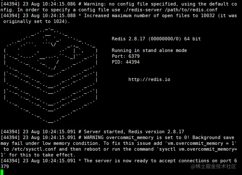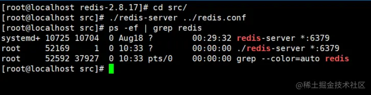 进入redis-2.8.17 的 src 目录执行 redis-server\