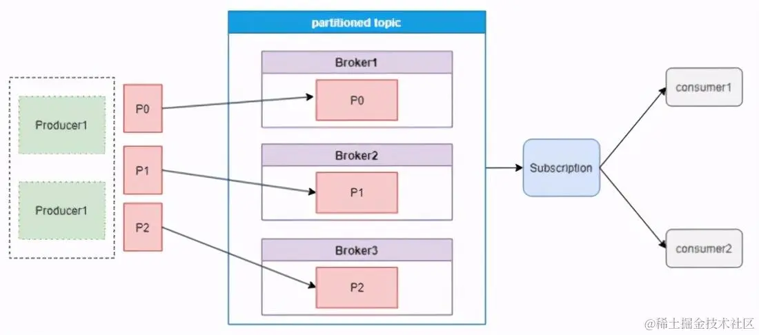 [3] Pulsar的topic是一种partitioned topic,可以被保存到多个broker,提高了topic的吞吐量。
