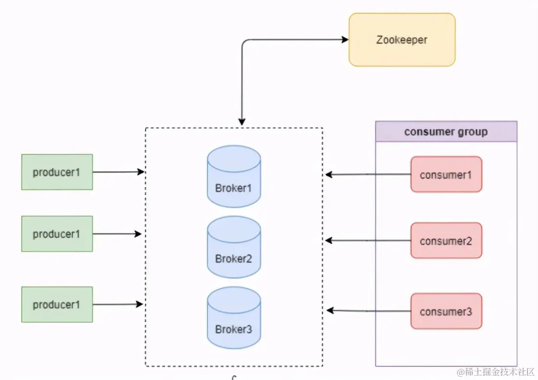 Kafka的消费模型是采用消费者组的模式,每一个分区只能给消费者组中的一个消费者消费。如下图: