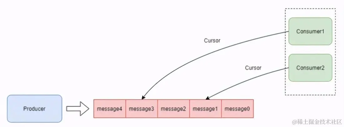 Consumer通过Subscription获取消息,同一Topic的Subscription可以获取到Topic数据的完整拷贝,这样Subscription为每一个Consumer分配一个Cursor,Consumer之间互不影响。如下图: