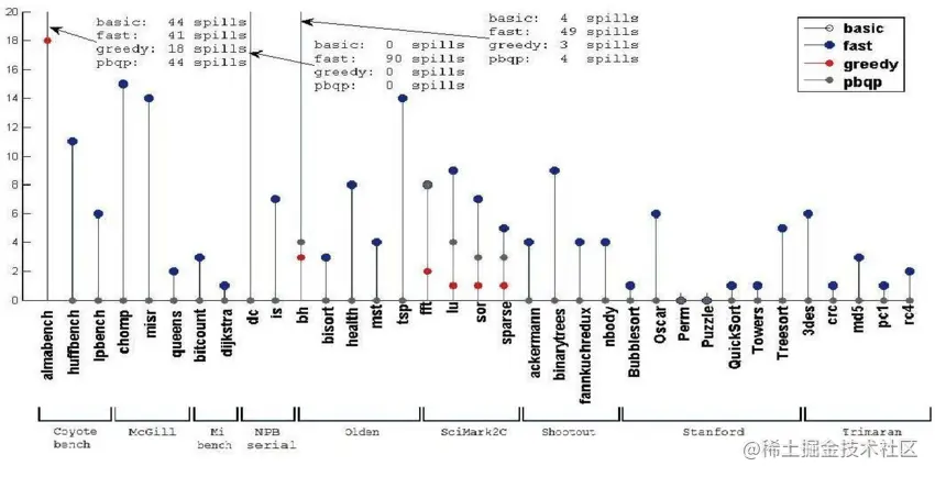 然后我们简单介绍了不同思路的寄存器分配算法:linearscan。最后介绍了llvm12中算法的实现并对比了llvm中四种算法的性能差异。