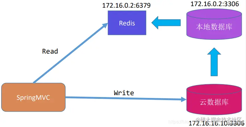 - 例如下面是一个云数据库实例分析: 云数据库与本地数据库是主从关系。云数据库作为主数据库主要提供写,本地数据库作为从数据库从主数据库中读取数据 本地数据库读取到数据之后,解析Bin log,然后将数据写入写入同步到Redis中,然后客户端从Redis读数据