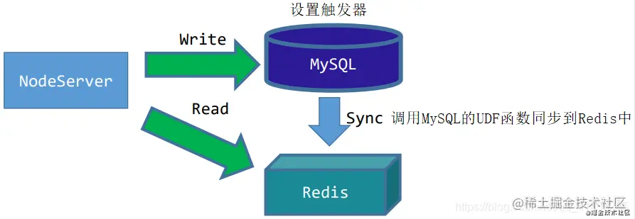 - 客户端(NodeServer)向MySQL中写入数据时,触发器会被触发,触发之后调用MySQL的UDF函数