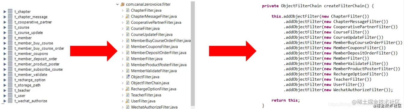 - MySQL表的同步,采用责任链模式,每张表对应一个Filter。例如zvsync中要用到的类设计如下: