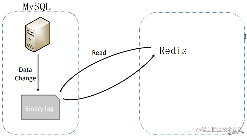 - 方案2就是: 上面MySQL的整个复制流程可以总结为一句话,那就是:从服务器读取主服务器Bin log中的数据,从而同步到自己的数据库中 我们方案2也是如此,就是在概念上把主服务器改为MySQL,把从服务器改为Redis而已(如下图所示),当MySQL中有数据写入时,我们就解析MySQL的Bin log,然后将解析出来的数据写入到Redis中,从而达到同步的效果