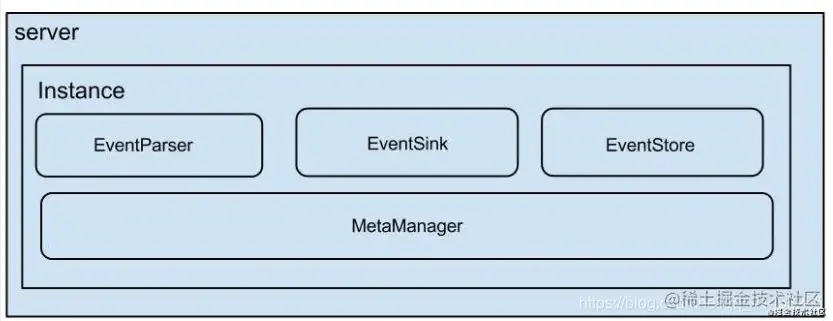 - 架构: server代表一个canal运行实例,对应于一个jvm instance对应于一个数据队列 (1个server对应1..n个instance) instance模块: eventParser (数据源接入,模拟slave协议和master进行交互,协议解析) eventSink (Parser和Store链接器,进行数据过滤,加工,分发的工作) eventStore (数据存储) metaManager (增量订阅&消费信息管理器) 复制代码