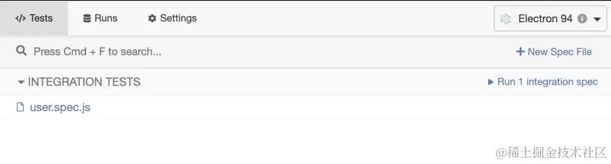 现在运行这个命令来启动Cypress,你应该看到你的电脑上打开了一个Cypress窗口。