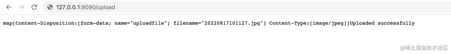 通过http://127.0.0.1:9090/upload来测试文件上传。 截图