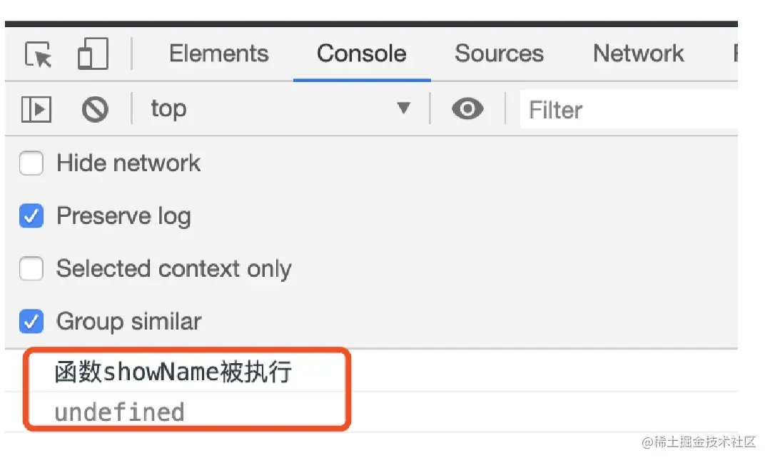 第 1 行输出“函数 showName 被执行”,第 2 行输出“undefined”,这和前面想象中 的顺序执行有点不一样啊!这是为什么?请带着疑问再来看下一段代码。