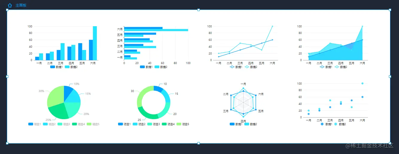 有了这些组件的帮助,你可以1秒钟生成一个基本的图表,1分钟完成由真实数据填充的8种不同风格的图表。