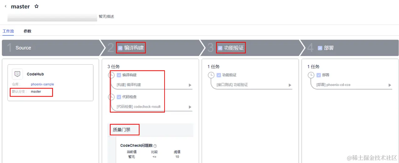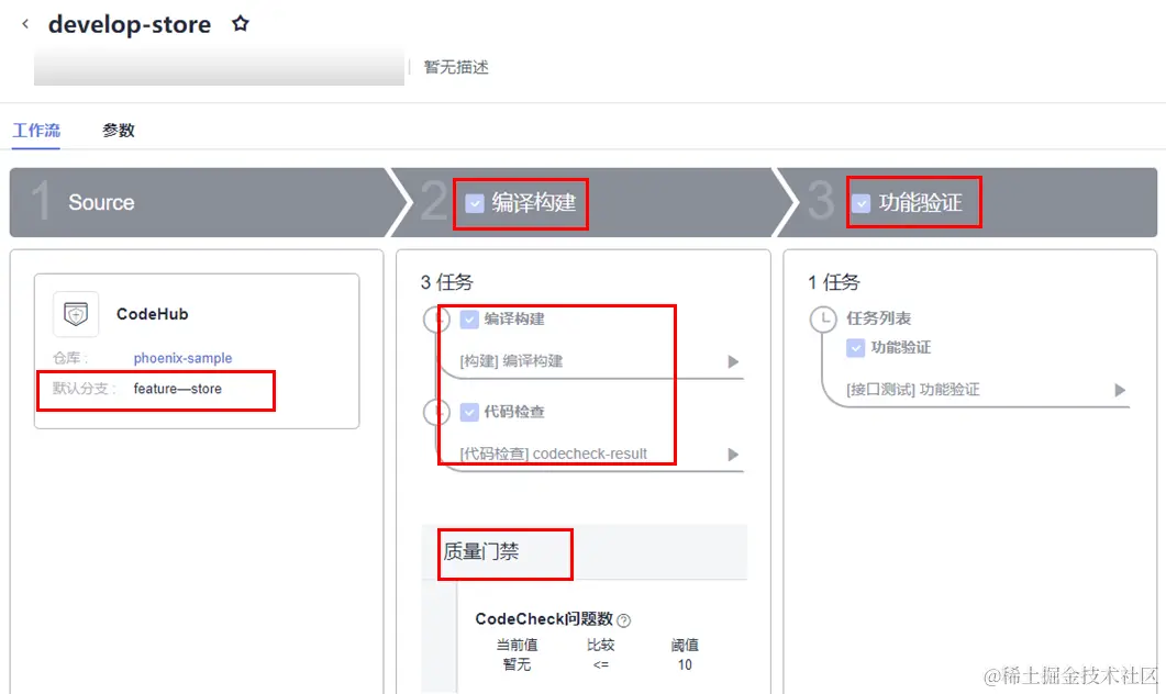 我们以华为云 Dev Cloud 为例,来看一下具体操作。通过华为云DevCloud的代码托管、代码检查、流水线服务可以完成持续代码提交操作。