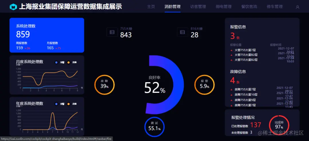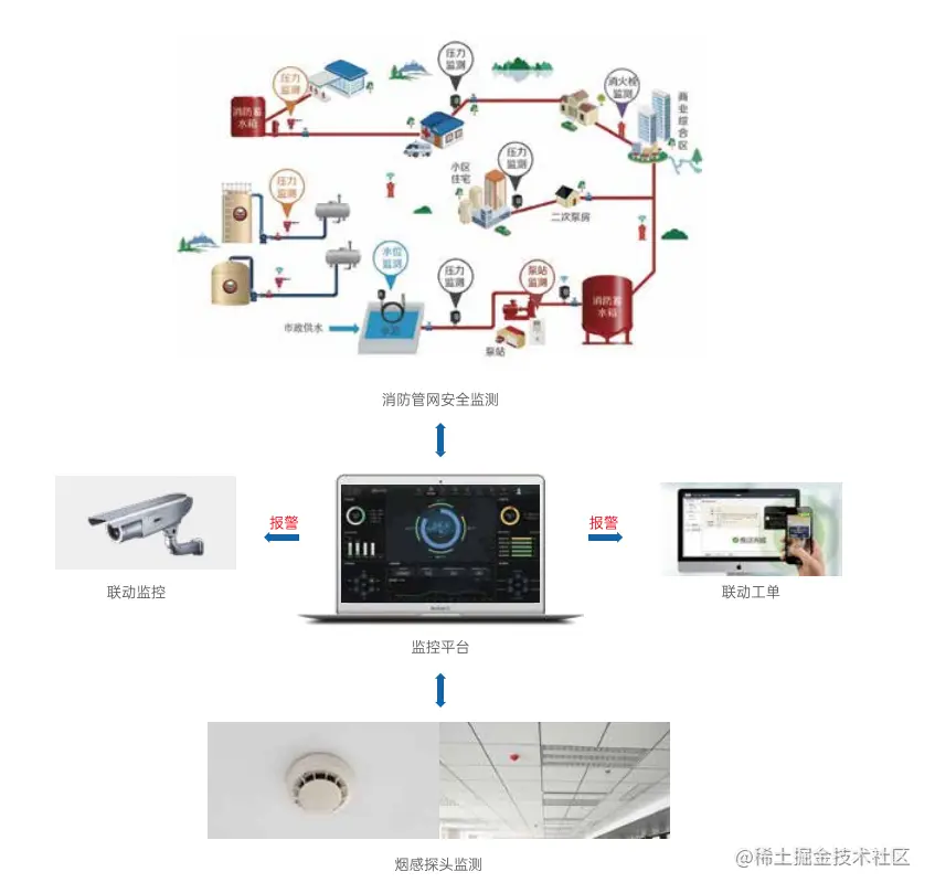通过消防管网安全监测和烟感探头监测,实时监测消防态势,有问题实时告警,并支持自动联动工单,及时消除隐患。
