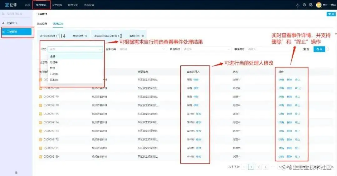 不过,当下有一些园区实行的安防系统还停留在靠人坐在电脑前,看着监控视频画面来发现危险,在及时性上就大打折扣。围绕“事件得到及时处理”,可以这样做: