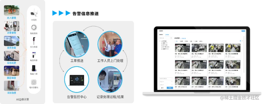 事故发生时,如果园区的安防系统能在第一时间智能精准识别并联动工单系统发出警报,让园区管理员能在最短时间内得到告警提示,前去现场处理,这是最理想的效果。
