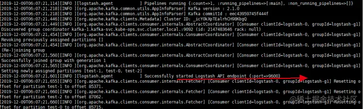 至此,整套流程搭建完了,然后我们进入一台kafka容器,我们查看consumer消息,如下:
