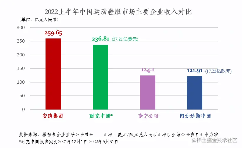 **更重要的是,在行业的“排位赛”中,安踏集团已实现对耐克中国的半年度收入超越。**就营收规模而言,安踏集团半年报的水平相当于1.1个耐克中国、2.1个李宁公司、2.13个阿迪达斯中国。
