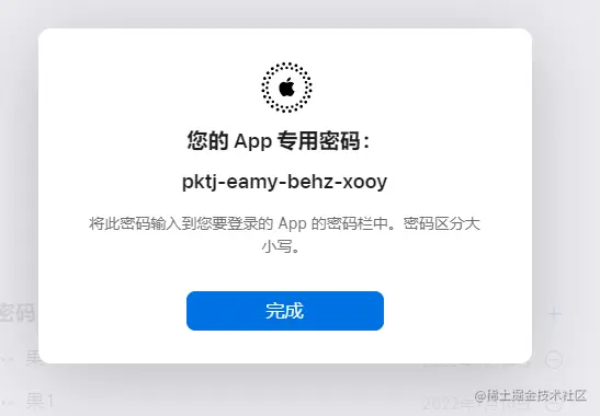 点击创建生成,(注意密码标签不是专用密码,是由苹果系统生成的一串密码)专用密码就是下面这个样子的密码,把这个密码复制,打开Appuploader