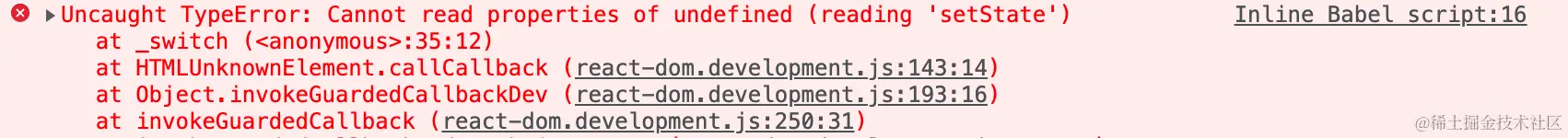 通过报错定位问题,显然问题出在第13行的this.setState()上面,报错显示不能从undefined中读取数据,这就是在告诉我们这里的this是undefined。