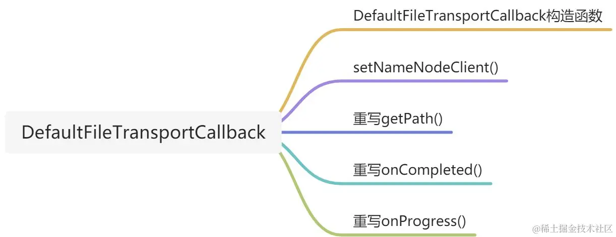 DefaultFileTransportCallback类负责检测文件传输,可以获得文件路径,在文件传输过程中,或是传输完成时输出传输速率,记录收到的文件,它是接口FileTransportCallback的实现类