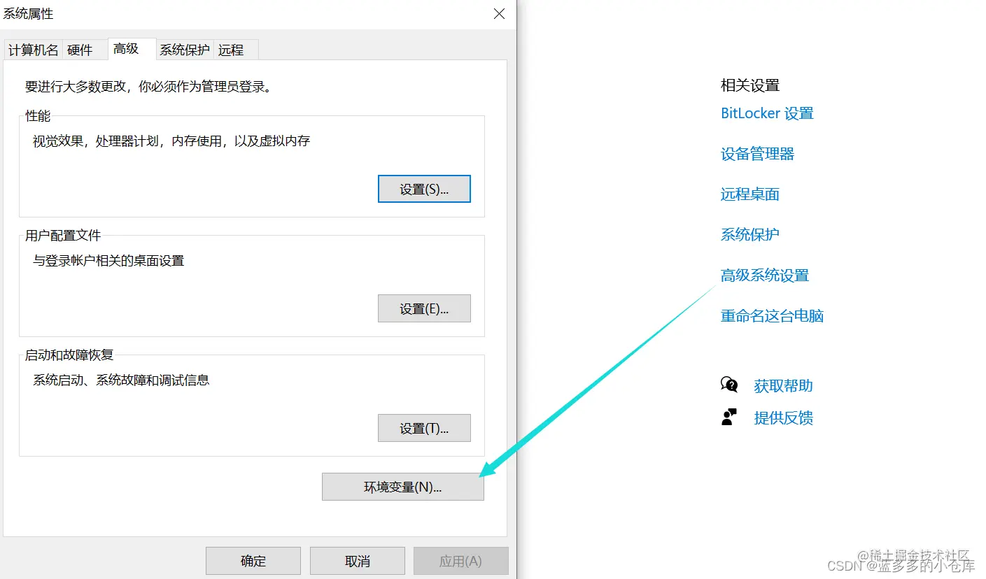 2、添加环境变量1>右键计算机(此电脑)→属性→高级系统设置→高级→环境变量