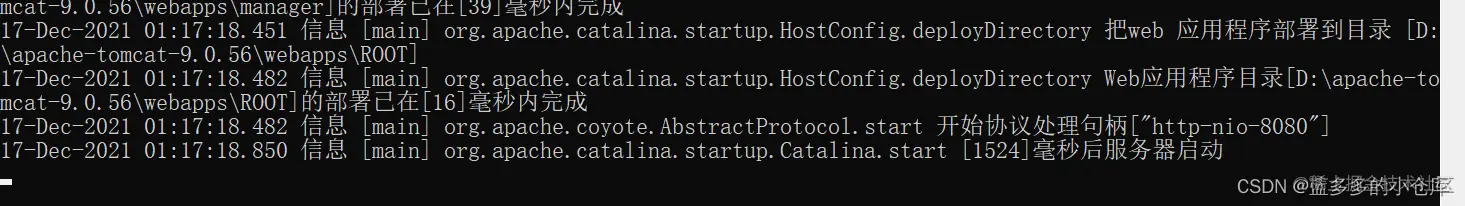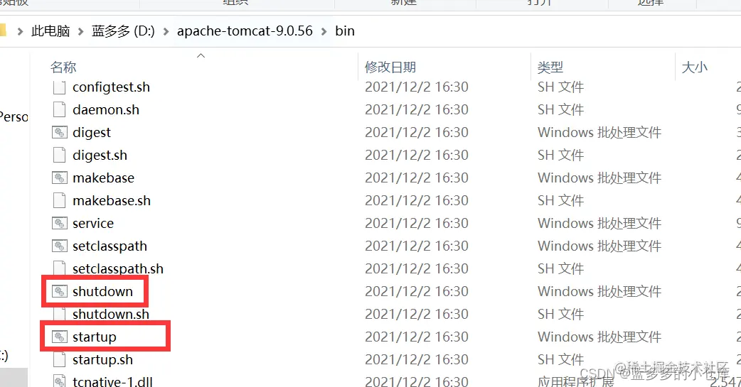 tomcat 启动后可以在任务管理器的进程中找到 Commons Daemon Service Runner 进程,在此进程下找到正在运行的 Apache Tomcat 9.0 Tomcat9 服务,右键结束进程即可Stop。3>启动方案三:tomcat 解压路径下的 bin文件夹内双击打开 startup.bat,并最小化,若需Stop 则需要双击打开 shutdown.bat 。