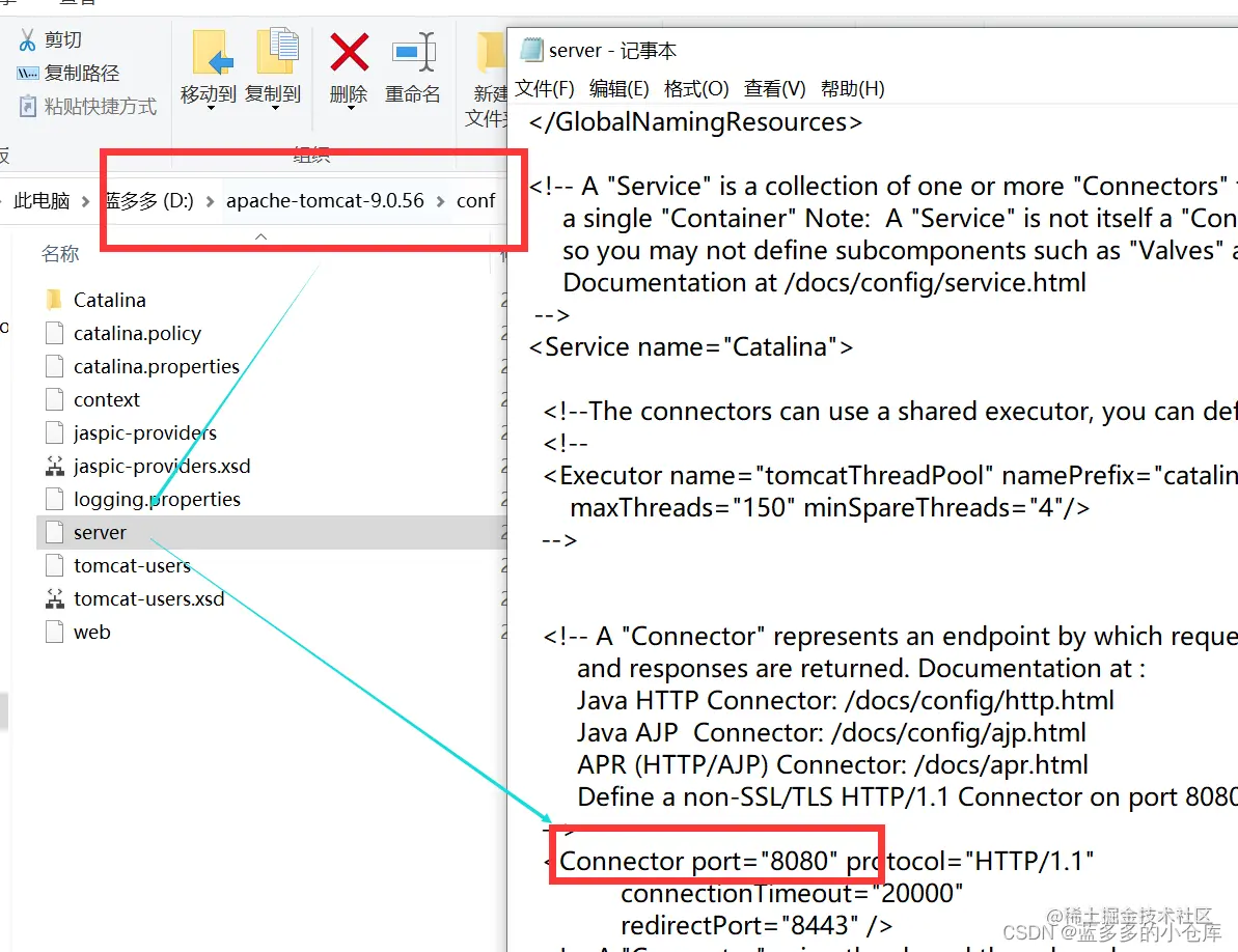2>将其中的 port="8080" 修改为 port="8081" 并保存(不一定要8081,找个没有被使用的端口)。