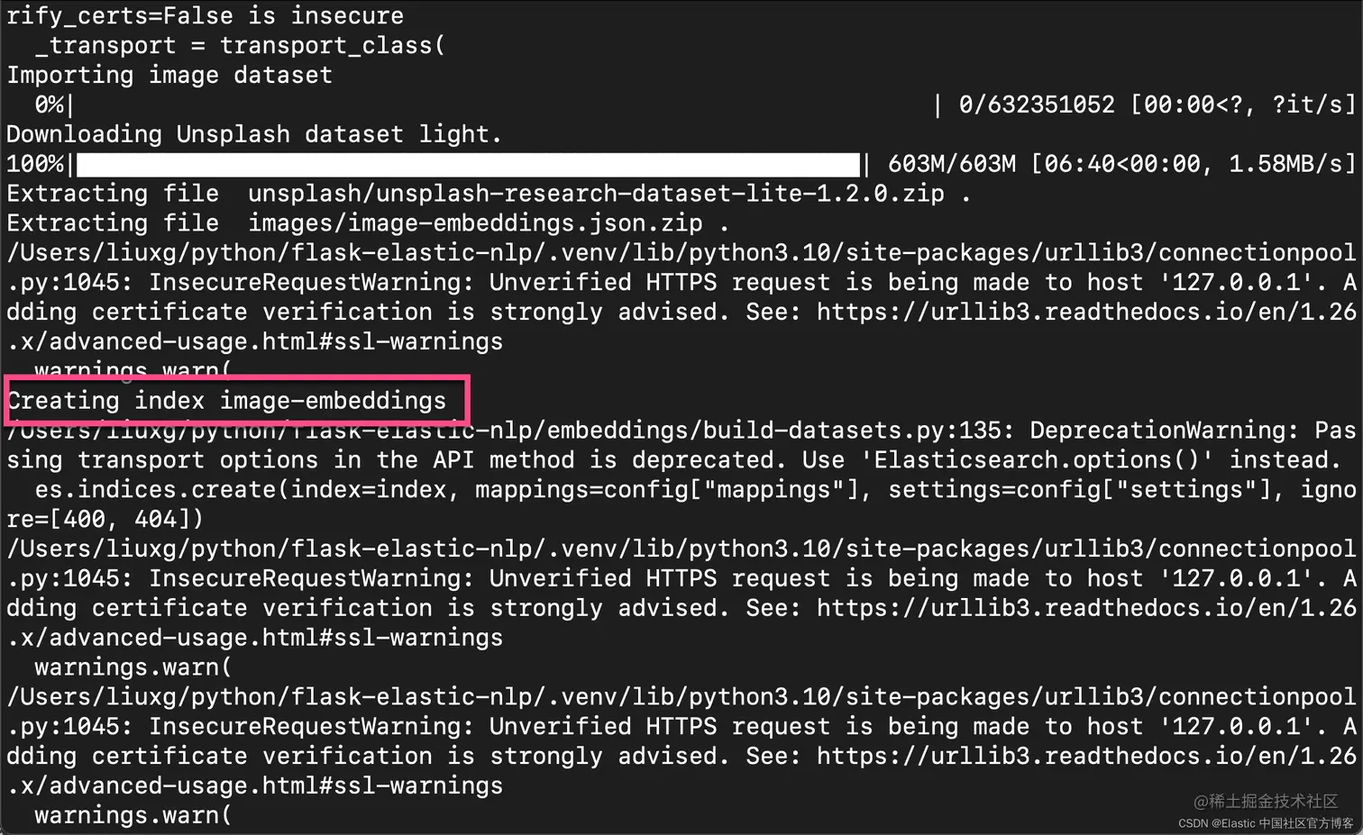 我们还需要在烧瓶应用程序中使用的数据索引。 在此过程中,脚本还将从 Unsplash 下载数据集。