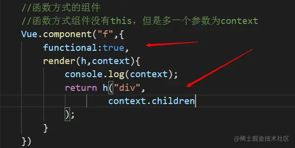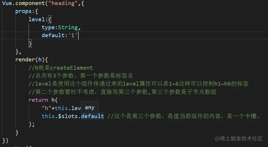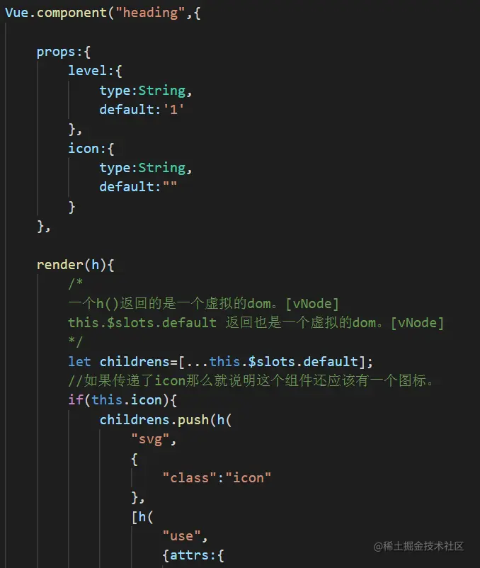 在组件里边除了用模板以外,还可以用render函数来实现组件渲染。