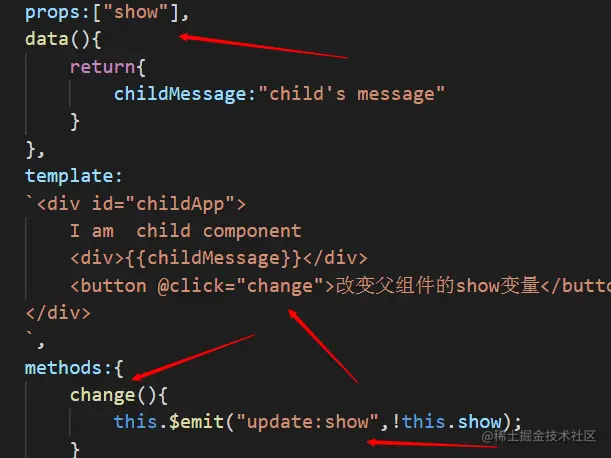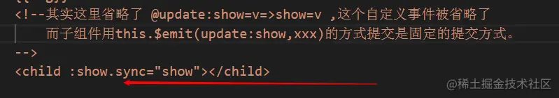 进行了进一步的测试,子组件提交的事件名称update:show 对应的是父组件的:show.sync,并且子组件提交的值会赋值给父组件的show,这里的show只是父组件的一个变量。