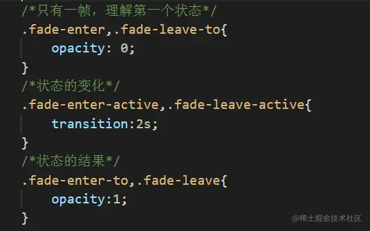 在结构代码中切记不要把name="fade" 这个丢了,否则的话,不会有任何效果。