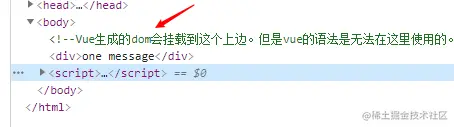 在浏览器看到的dom结构如下: