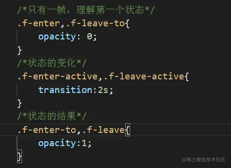 先把要动画的盒子所对应的transition标签的name属性改变时。然后样式根据这个做相应的调整,如下代码所示,效果是一样的。