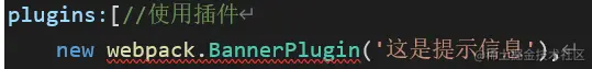 plugins:[//使用插件 new webpack.BannerPlugin('这是提示信息'), new HtmlWebpackPlugin( { template:"index.html"//在配置文件当前目录寻找index文件作为模板 } ), // new