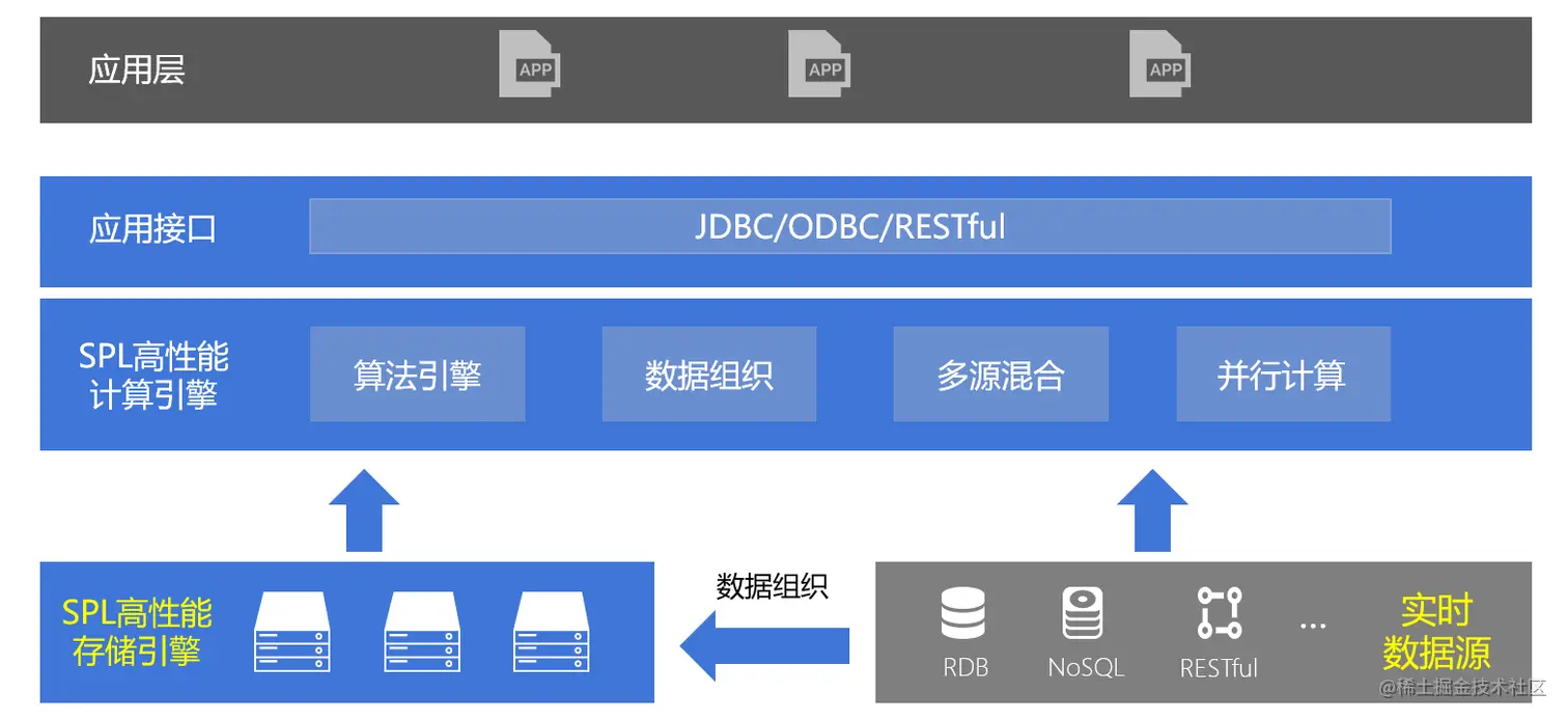 但遗憾的是,仍然有相当多情况无论怎样优化都不可能跑得更快。这里做 SQL 性能优化真是让人干瞪眼 介绍了一些,并做了相应的技术分析。由于其理论基础关系代数的局限,SQL缺乏离散性和有序集合等特性的支持使得SQL在表达某些高性能算法时异常困难,甚至完全写不出来,只能采用比较笨的低性能算法,眼睁睁地看着硬件资源被白白浪费。在 写着简单跑得又快的数据库语言 SPL 中有对SQL理论基础缺陷的通俗解释。也就是说,SQL的慢是理论性的,这种问题仅仅由数据库在工程层面优化只能局部改善(确实有不少商业数据库能够自动识别某些SQL并转换成高性能算法),而不能根本地解决问题(情况复杂时数据库优化引擎都会“晕”掉,只能按SQL的书写逻辑执行成低性能算法)。理论性的缺陷当然也不能寄希望于更换数据库而得到解决,只要还是用SQL,即使采用分布式数据库、内存数据库也还是这种情况,在消耗更大成本的资源后当然也能有一定的性能提升,但和硬件本应能够达到的性能仍然有巨大的差距。