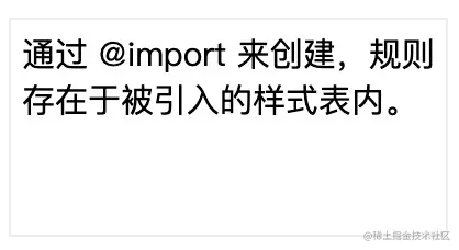 | 通过 @import 来创建 | 一个级联层同样可以通过 @import 来创建,规则存在于被引入的样式表内。 |