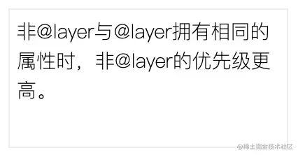 | 非@layer与@layer的优先级 | 非@layer与@layer拥有相同的属性时,非@layer的优先级更高。 | |