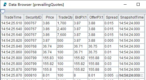 prevailingQuotes 被定义为共享流数据表,之后可以对其进行订阅和进一步的处理。