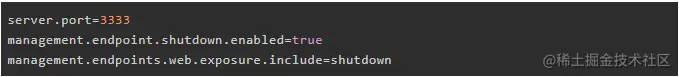 management.endpoints.web.exposure.include=*就可以。将如下配置设置到application.properties里边。设置一下服务的端口号为3333。