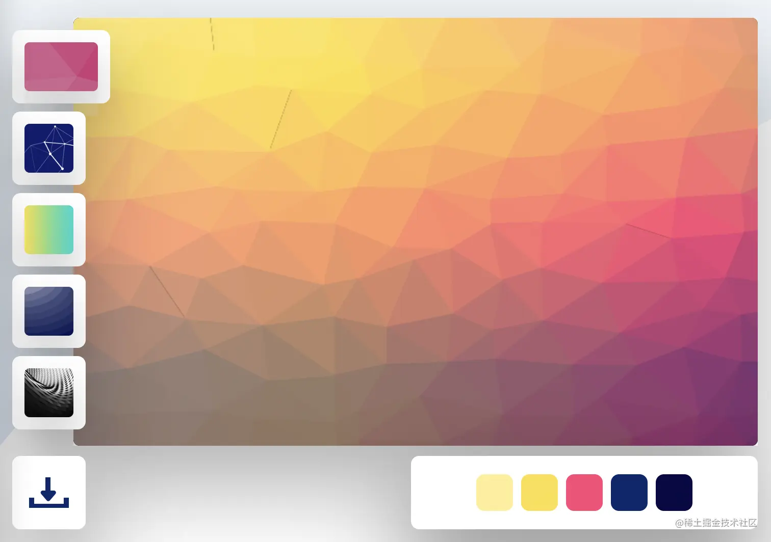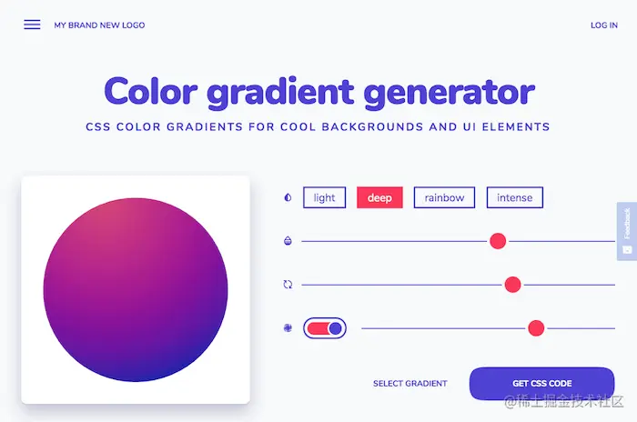 在色彩渐变算法的支持下,该生成器可以根据你选择的颜色创建均衡的渐变。有四种不同风格的渐变,从微妙到珍珠母效果和强烈的深色渐变。你可以用滑块调整渐变,一旦你对结果满意,就可以复制粘贴生成的CSS代码,在你的项目中使用它。很好!