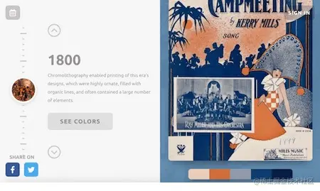 从公元前2000年到20世纪60年代,该项目展示了来自12个不同时代的180个调色板,每一个都代表了当时的色彩语言。令人着迷!