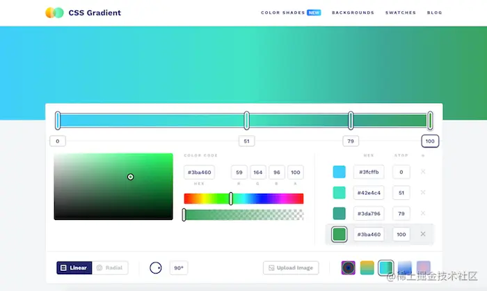 但是,网站不仅仅有梯度生成器,还有围绕梯度的有用内容:技术文章、来自真实项目的梯度例子、教程,以及像色调集、梯度色板和更多灵感的参考资料。全面了解渐变以及如何使用它们。