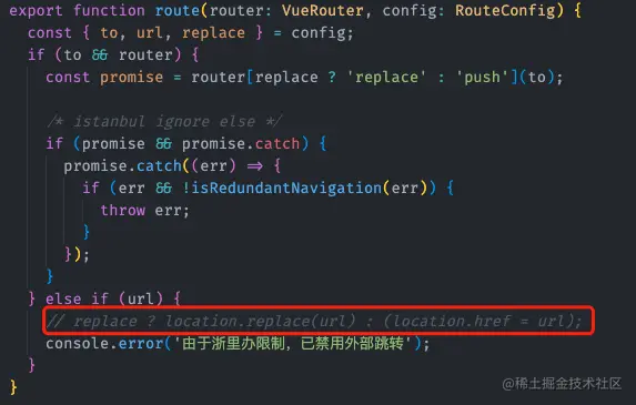 注:该行代码的作用是,有些组件支持接收url属性,点击进行外链跳转(如tabbar组件),这里注释后不可再使用url进行外链跳转。