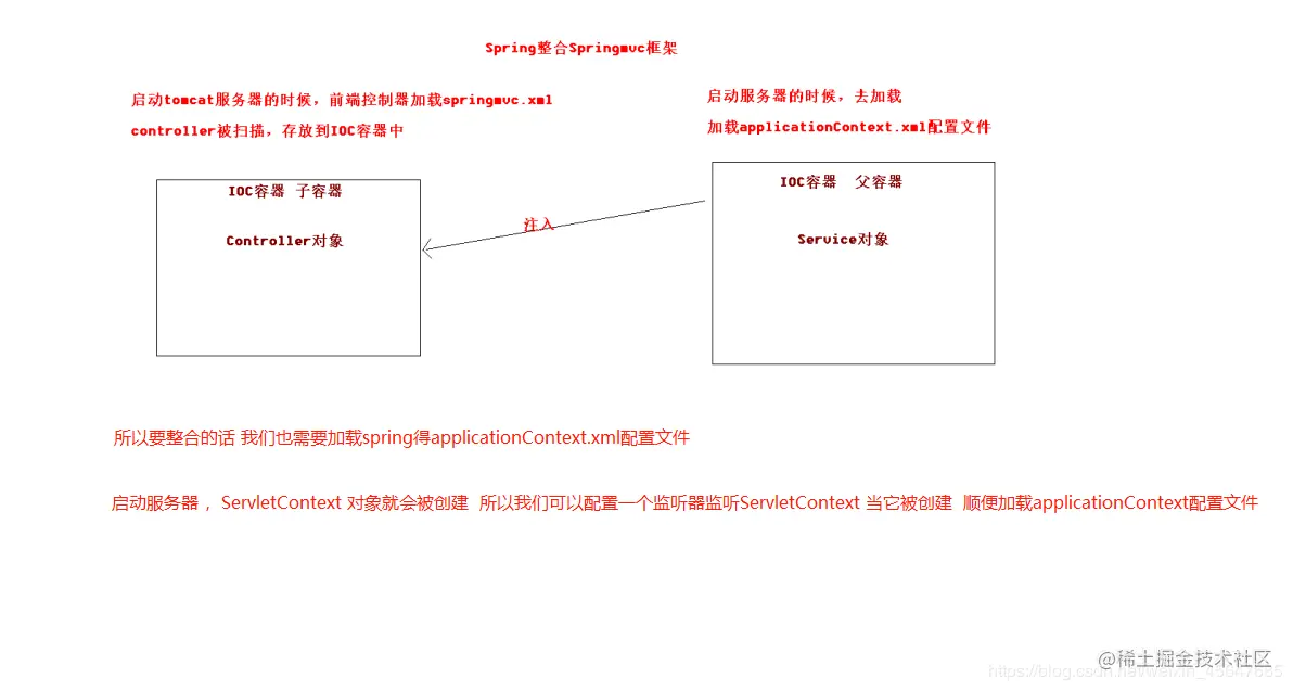 springmvc要整合spring的话,就需要在启动服务器的时候顺便加载spring的application配置文件,我们都知道 ServletContext对象在启动服务器的时候就会被创建,那么我们可以使用一个监听器监听ServletContext,并在ServletContext创建的时候同时加载spring的配置文件完成整合工作。