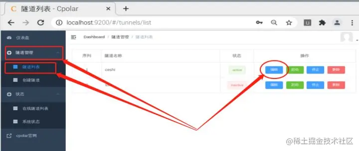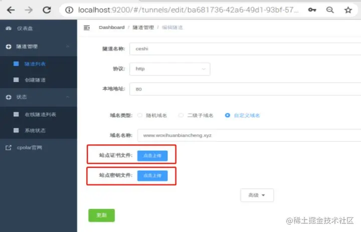 对应的安全文件下载完毕后,我们将文件解压到本地。解压后的文件分别为安全证书(.pem文件)和密钥文件(.key文件)。文件解压完成后,我们回到cpolar的web-UI客户端。在cpolar客户端的隧道列表,我们找到对应的数据隧道,点击“编辑”按键。