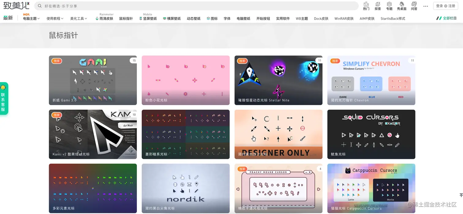 丰富的鼠标样式,还有一些壁纸和电脑桌面美化工具和素材