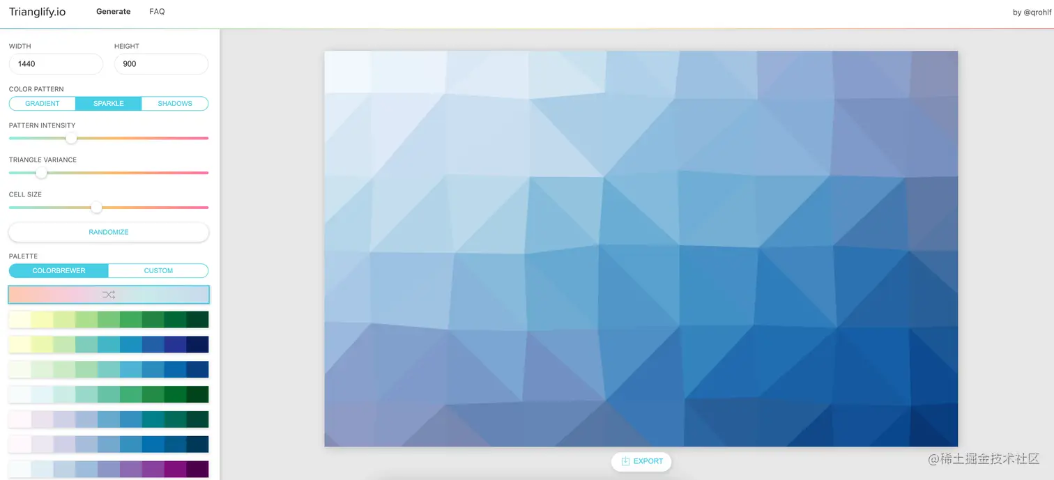 一个多颜色混合的背景图,左侧可以在线滑动参数值进行效果预览