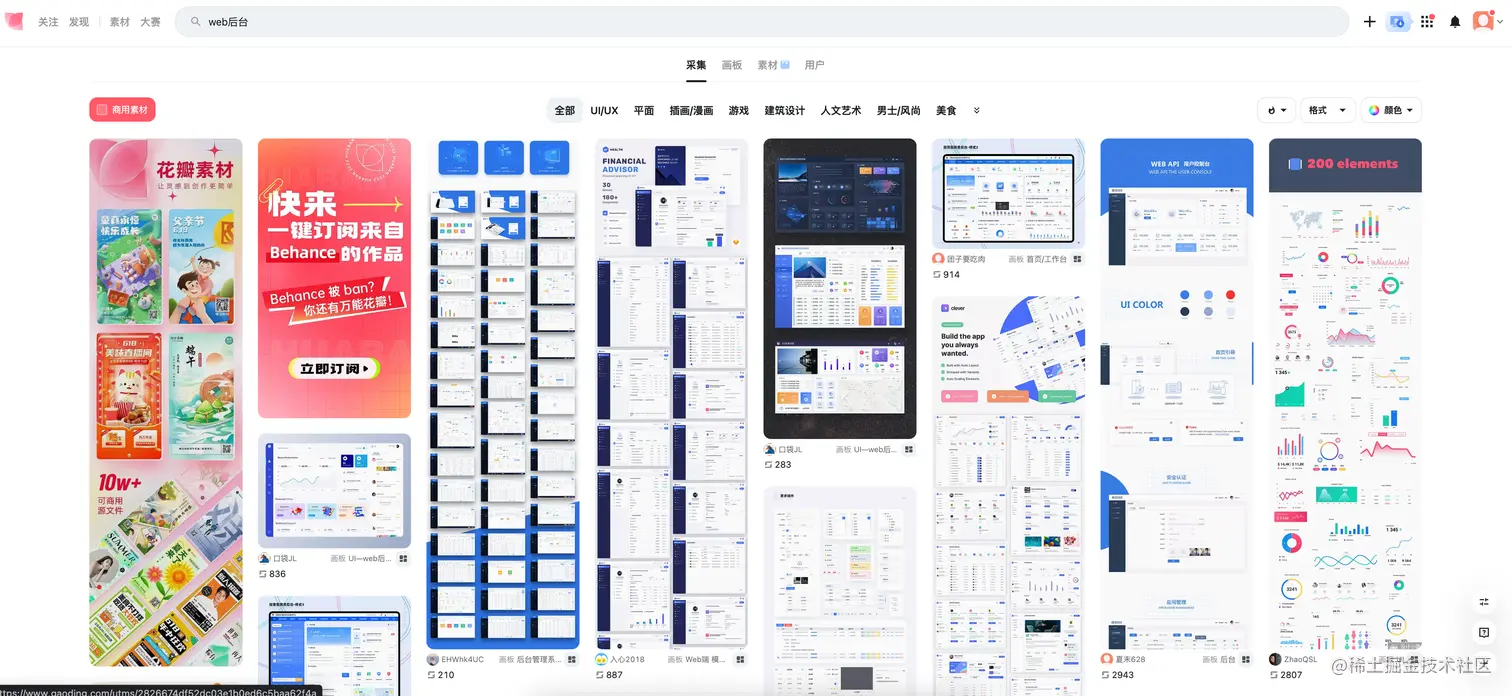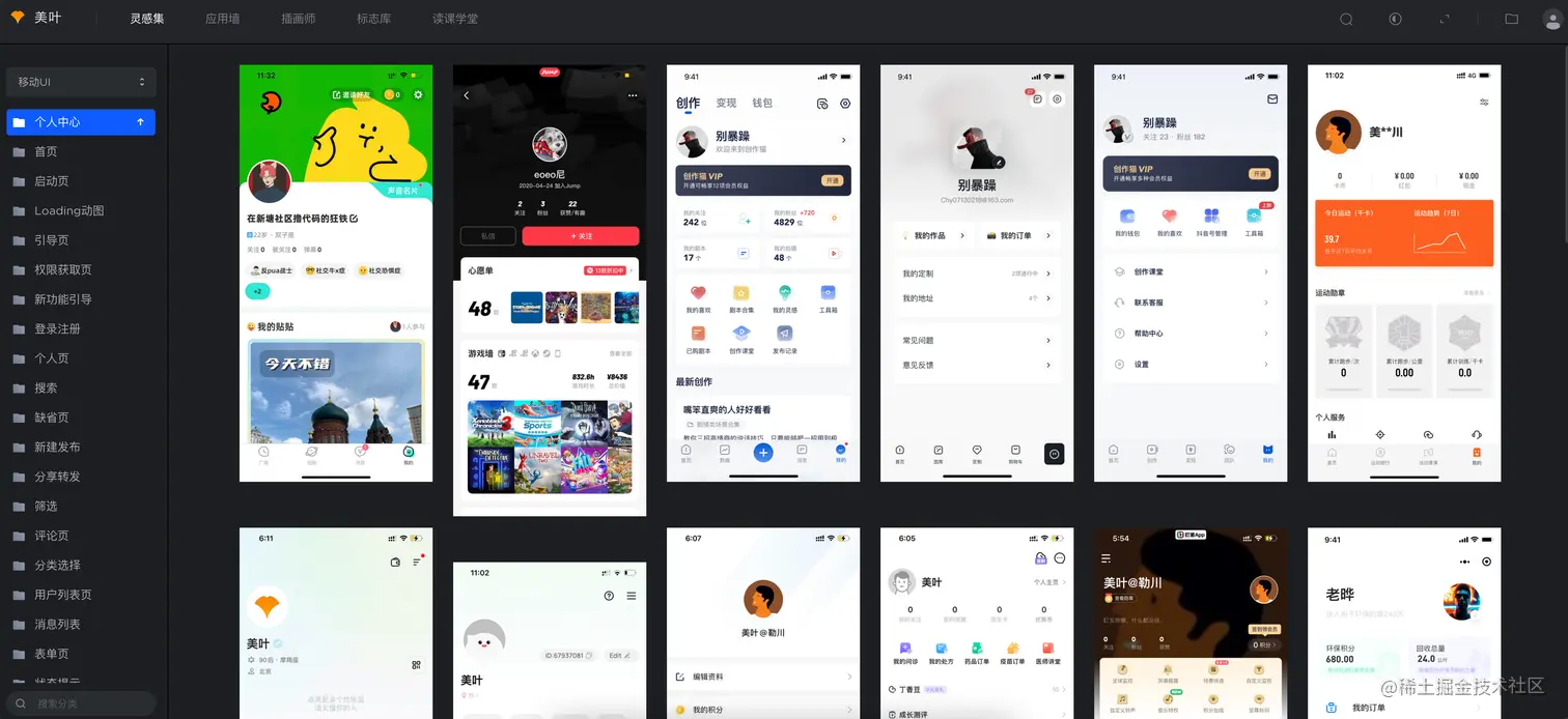 啥都有,很多ui巨好看的页面模板,随便逛逛,创意灵感