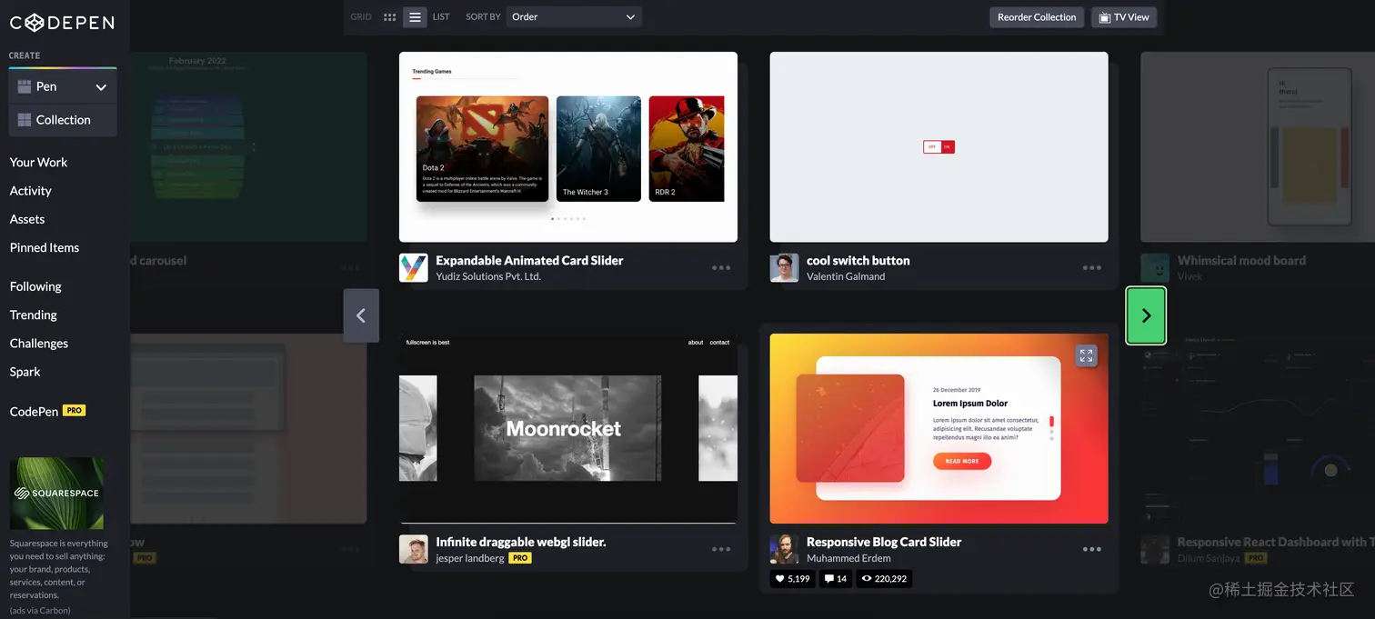 网址: https://codepen.io/trending ❗️(科学上网体验更好)
