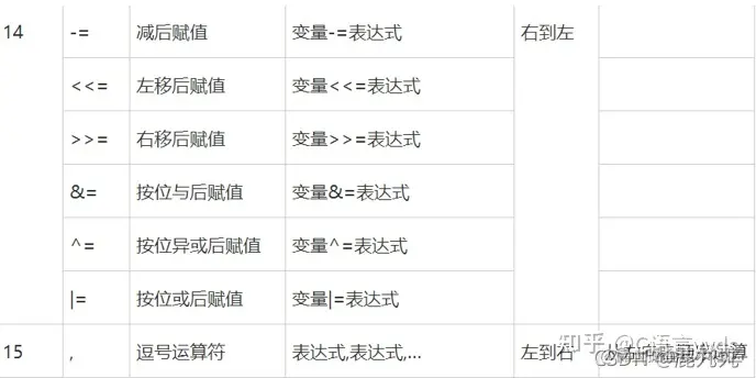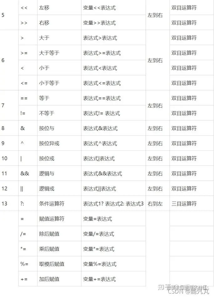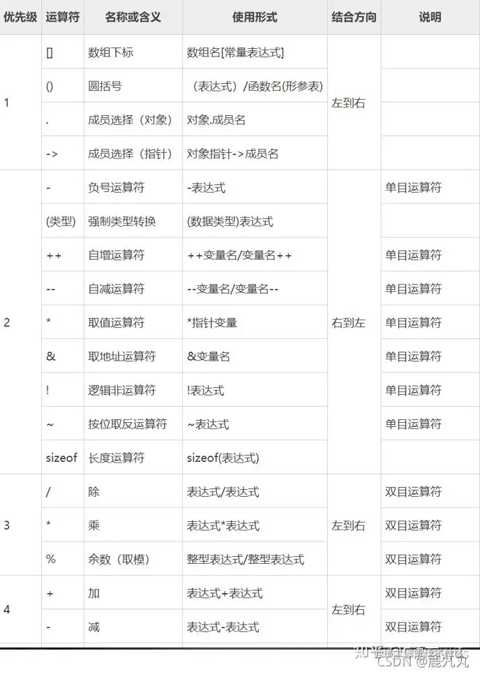 给大家分享的操作符结合性顺序表: