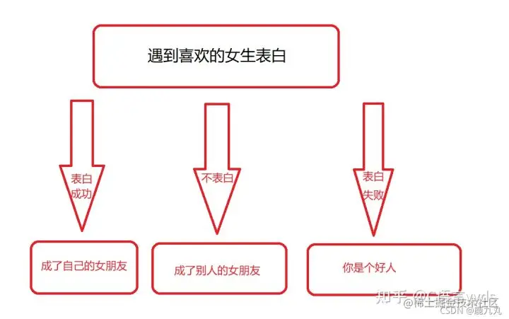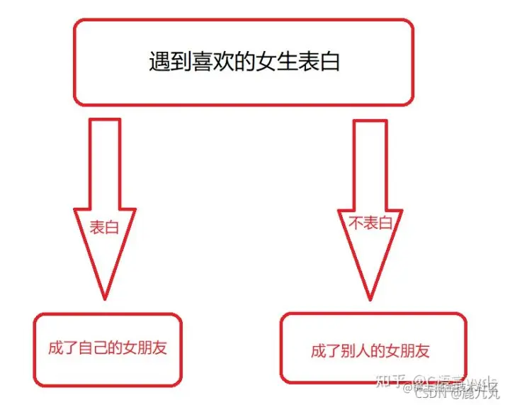 当然,也有多分支选择,如果你表白成功了,她成了你的女朋友;相反,如果你表白失败了,她说:你是个好人,如果你压根就没有表白,那她最终还是成为了别人的女朋友。(遇到喜欢的人就要勇敢表白哦!!)